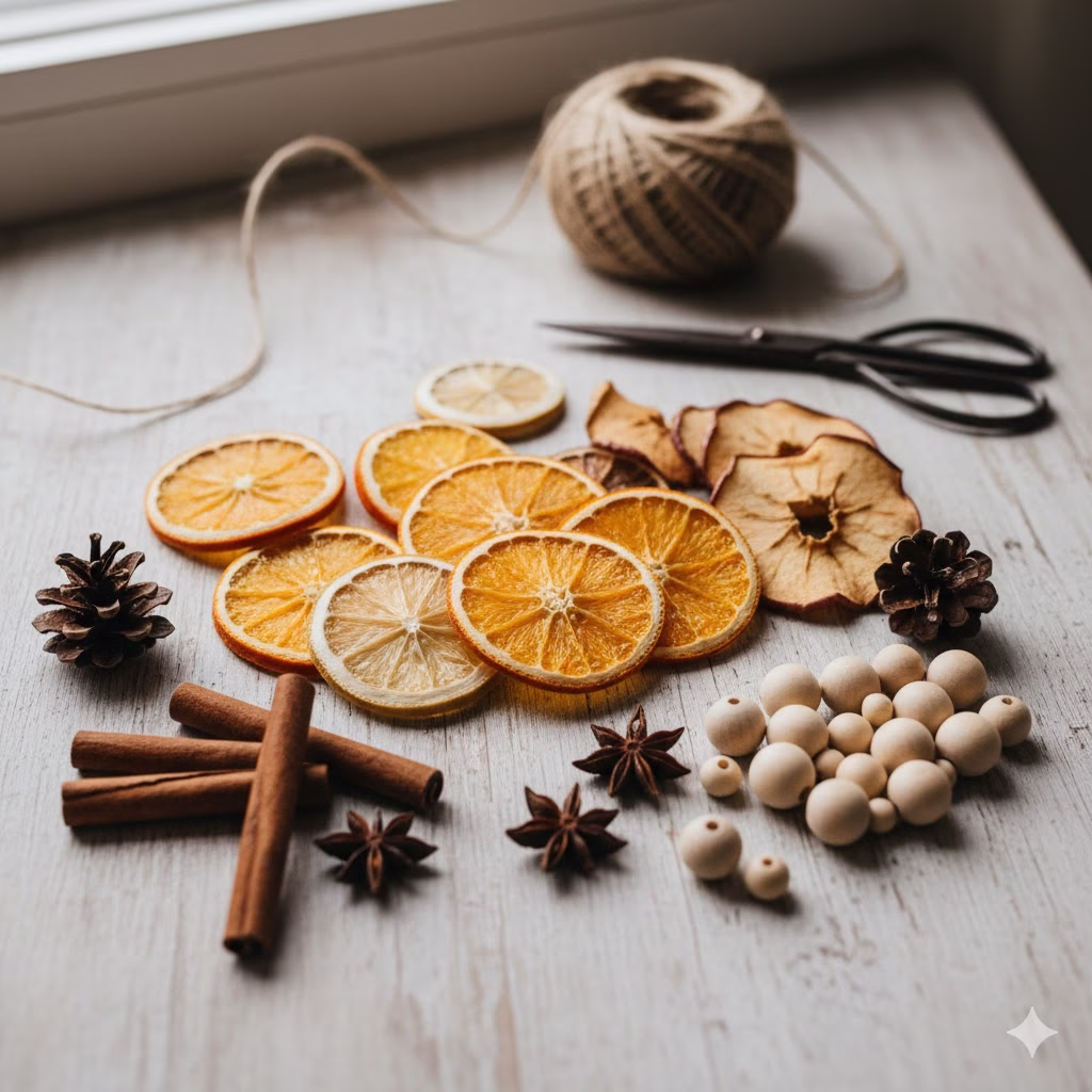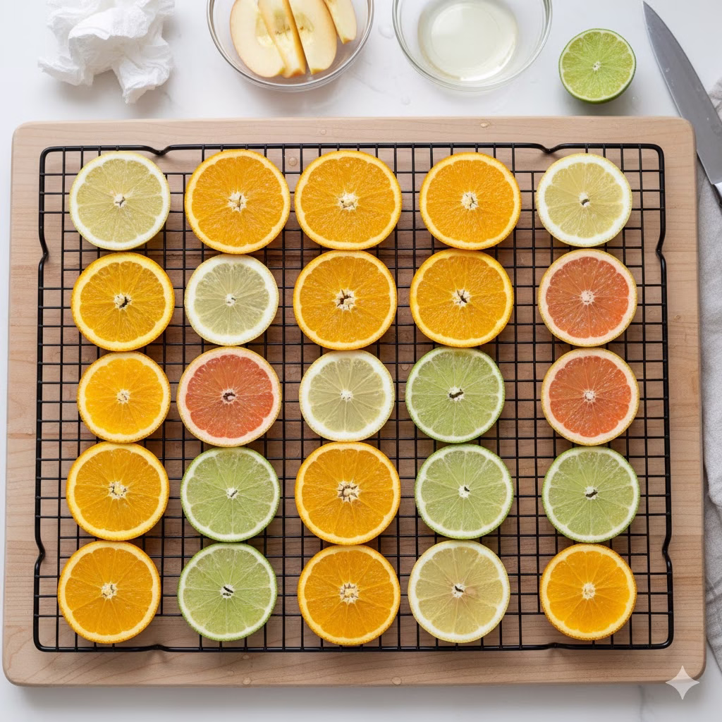 1. Dry Your Items: Slice citrus fruits (oranges, grapefruit) very thin. Lay the slices on a baking sheet with parchment paper. Bake them at a very low temperature (around 200∘F or 95∘C) for two to three hours. Flip them now and then until they are crisp and totally dry.