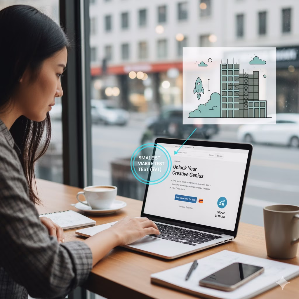 Do not spend time building the full product right away. That is a huge risk. The smart move is to find the fastest, cheapest way to prove that people actually want to buy your solution. This is called the Smallest Viable Test (SVT).