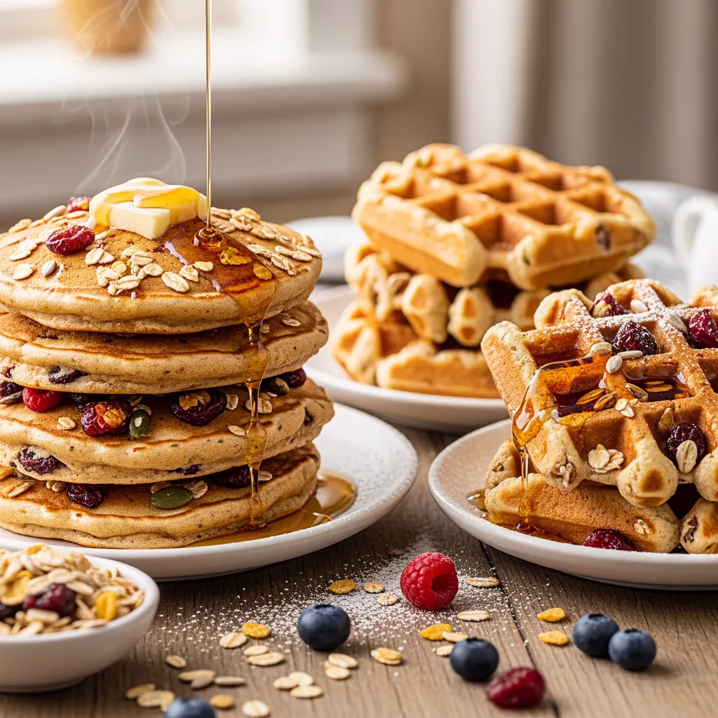 Enhanced Texture: The toasted nuts and seeds provide a rustic crunch that contrasts beautifully with the fluffy pancake interior.