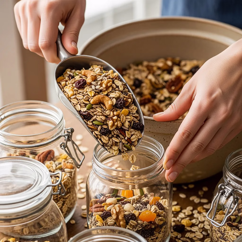 Pour your cooled oats into your large bowl. Add the toasted nuts and seeds. Gently fold in the dried fruits, coconut, and any spices you’re using. Mix thoroughly but gently—you don’t want to crush the oats.
