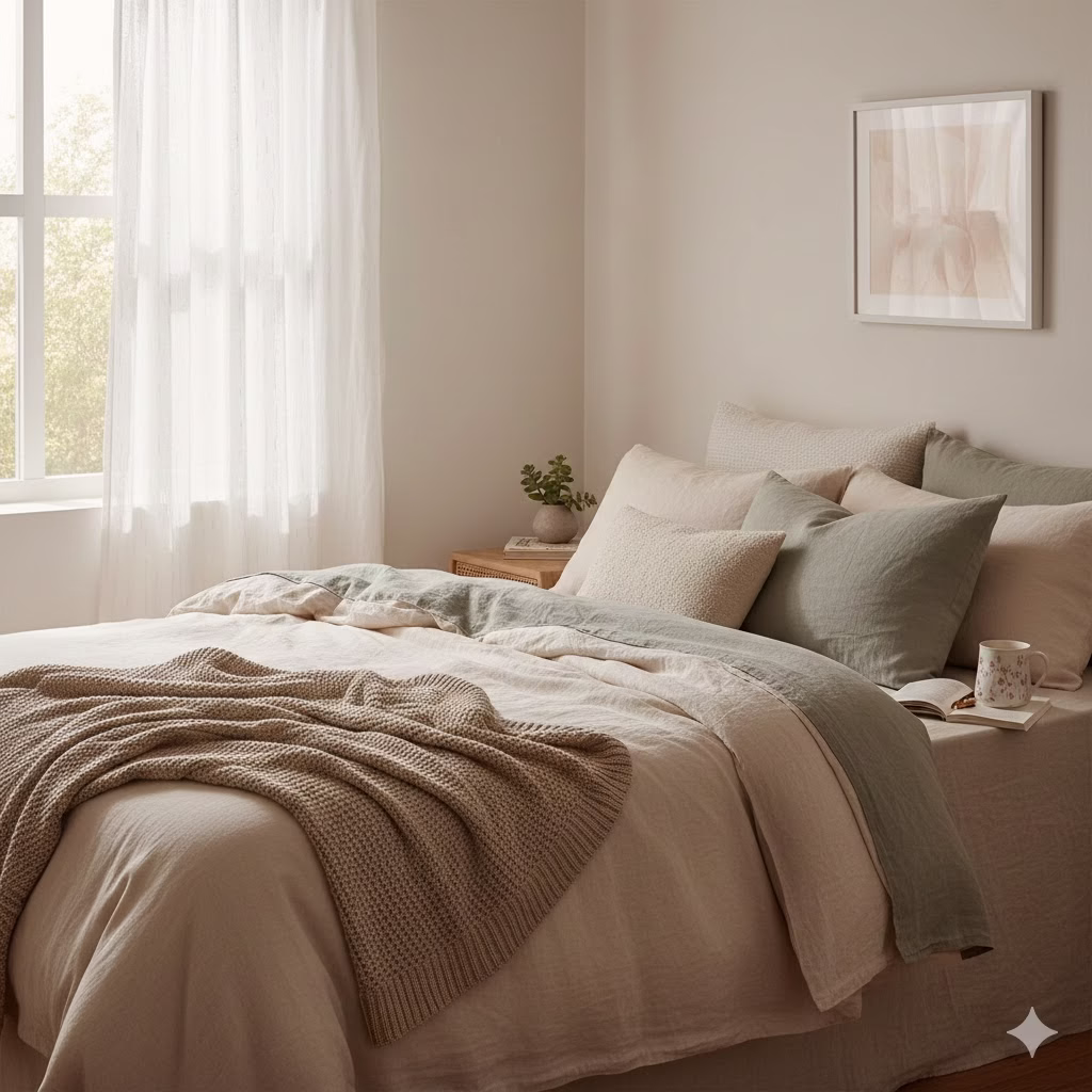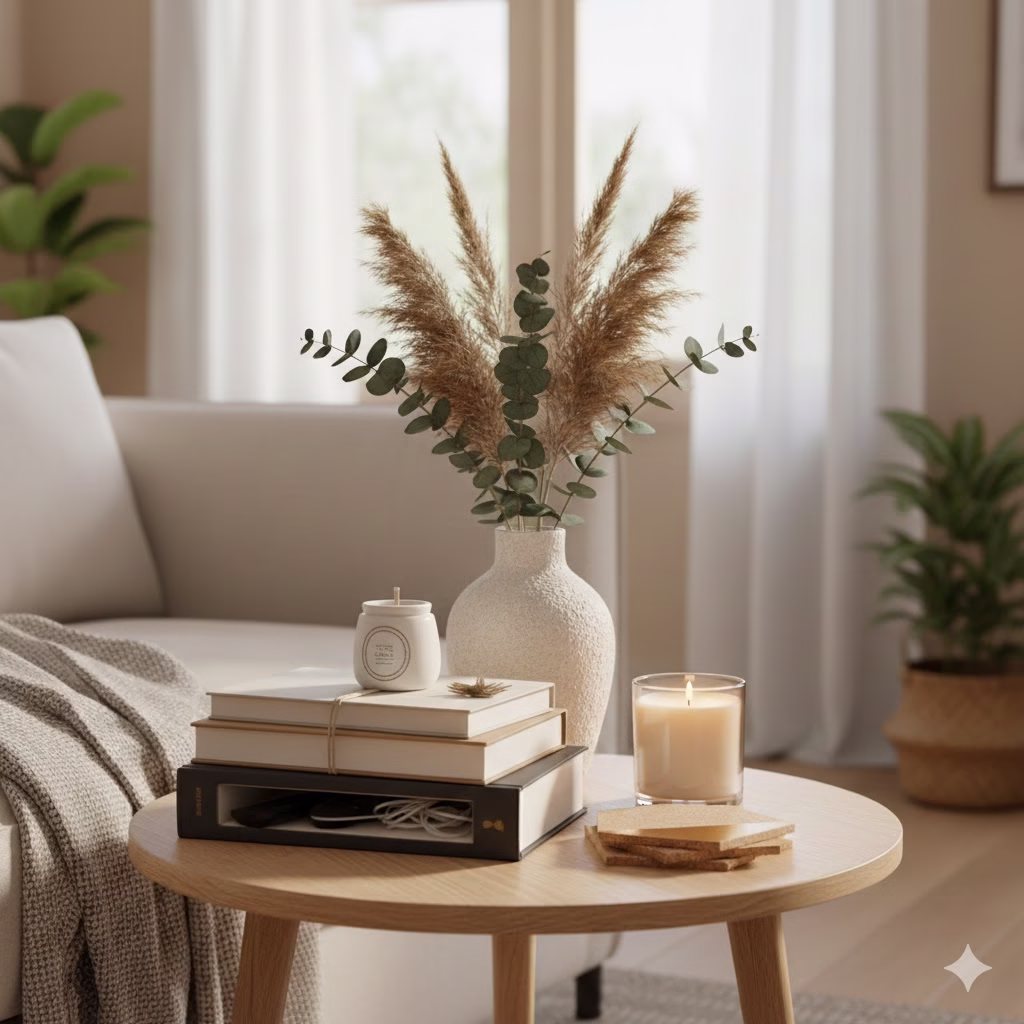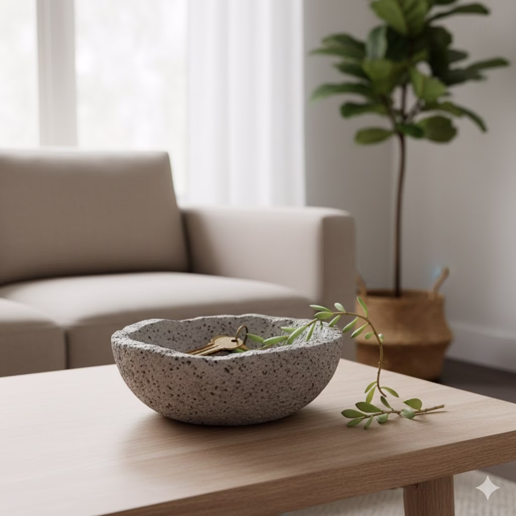 - Focus on shape and feel: Since there are few colors, the interest comes from the shape and material of the objects. Use artistic vases, smooth stone items, plain ceramic pieces, or sharp metal accents.