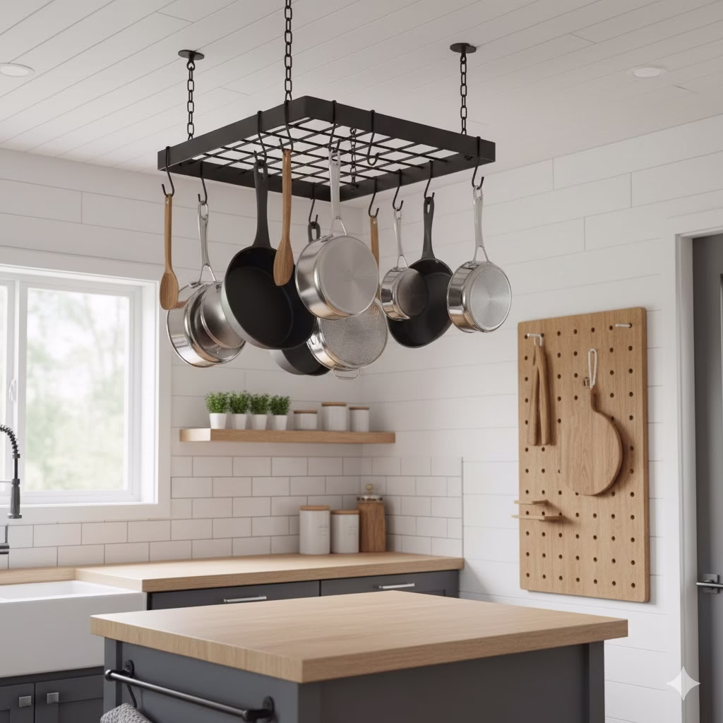 8. Pot Racks and Hanging Hooks: Vertical Order