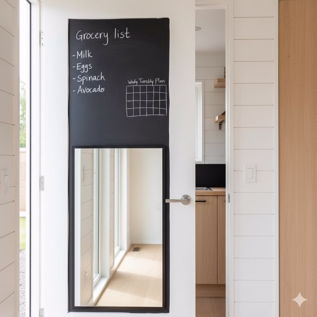 - How to do it: For mirrors or hook boards, make sure they are fixed well. For chalkboard paint, clean the door well first. Think about the added weight on the door. Adjust the hinges if you need to.
