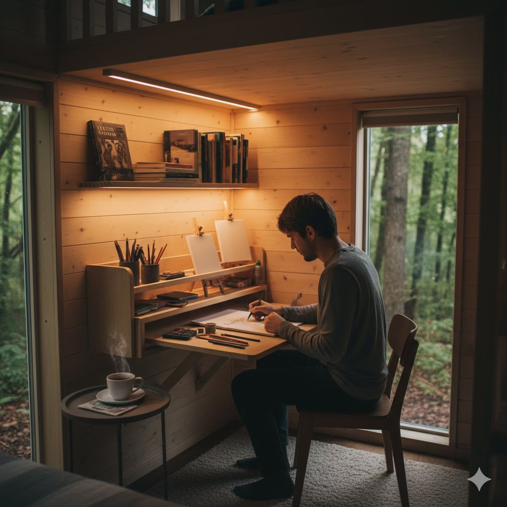 The small, focused environment of a tiny house is surprisingly good for creative thinking and deep work (if you need to work). Experts have noted that a few limits on your environment can actually improve focus and creativity. When everything has its place, and you are free from the distractions of a large, messy home, your mind has room to wander and create in a useful way.