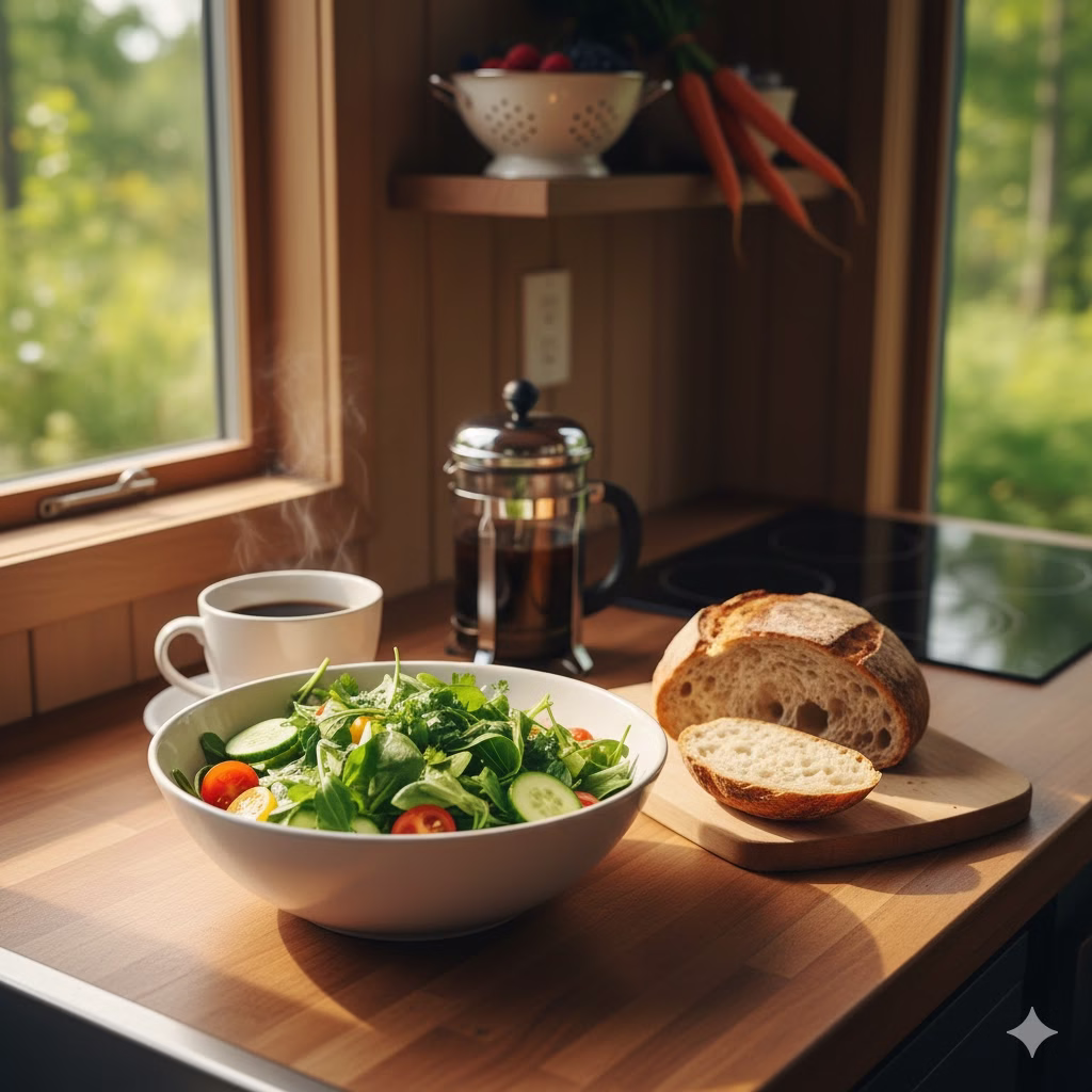 - Plan Simple Meals: Since storage and fridge space are small, plan simple meals. Buy groceries often and locally, instead of trying to buy a whole week’s worth of food at once.