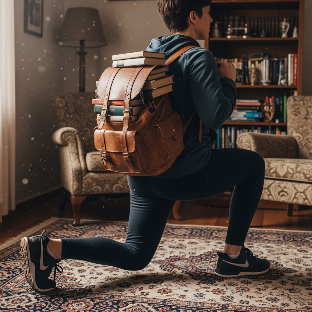 Wear your weighted backpack for squats, lunges, step-ups, push-ups, and neighborhood walks. Even simple activities like climbing stairs become serious workouts. The extra resistance makes your muscles work harder without changing your usual movements.