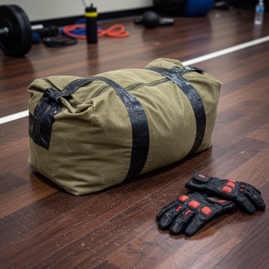 Put your sealed sand bags inside the outer duffel bag. Having multiple smaller bags lets you adjust the total weight. You can start lighter and add bags as you progress.