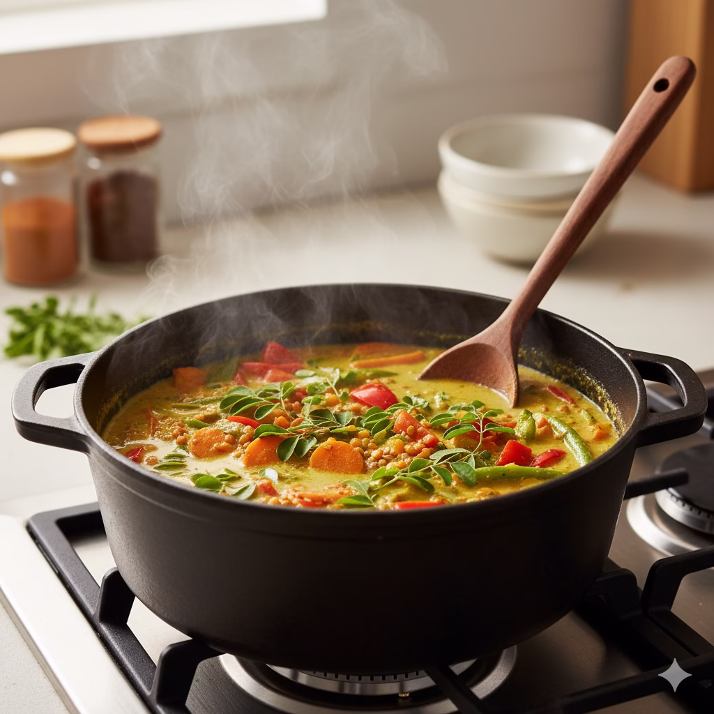 - Supports Good Digestion: Both moringa and the high-fiber vegetables in this curry help keep your digestive system running smoothly, leading to a happier, balanced gut.
