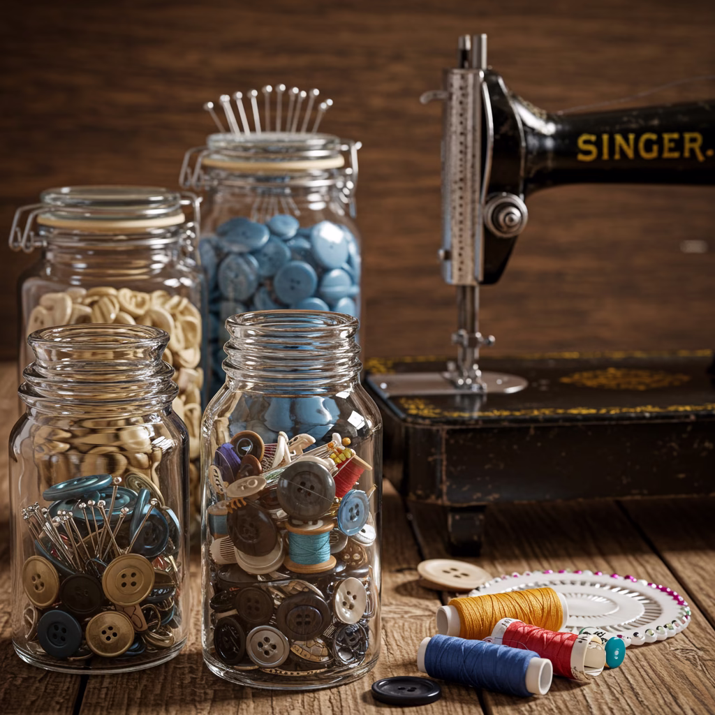 Line the jars first. Cut the felt to fit the inside of the jar. This stops things from making noise. Next, sort your items. Use different jars for buttons, pins, or beads. Then, make the lids pretty. Glue bits of fabric to the top of the metal lids. Keep these jars near your desk. Now you can find what you need fast.