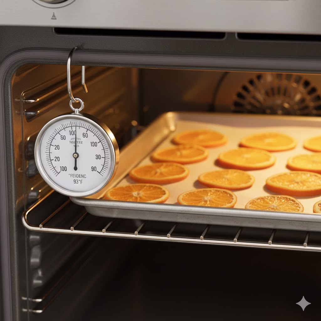 The “Low and Slow” Rule: If your oven has a “warm” setting that sits around 150°F (65°C), this is actually the gold standard. It will take longer (anywhere from 4 to 6 hours), but the color of the Dried Orange Slices will remain bright and translucent rather than turning a muddy copper.
