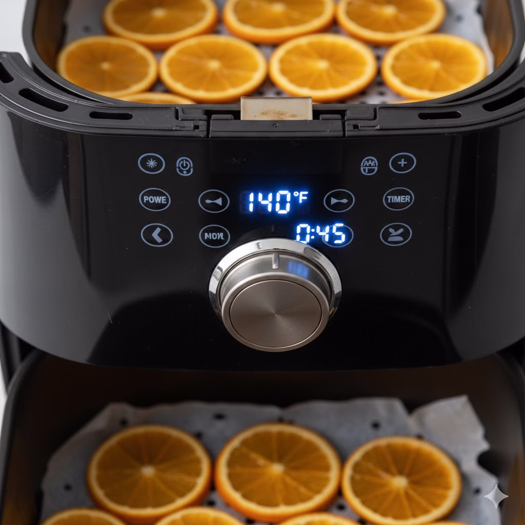 The biggest risk with an air fryer is the heat. Most air fryers are designed to cook food fast at high heat. For Dried Orange Slices, you must use the lowest setting possible.