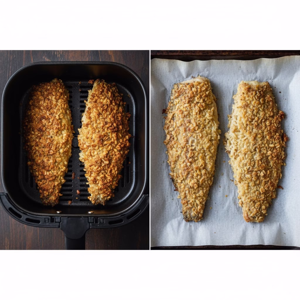 - Cook Time: Bake for 15–18 minutes, flipping once halfway through, until the crust is golden and the fish is cooked through.