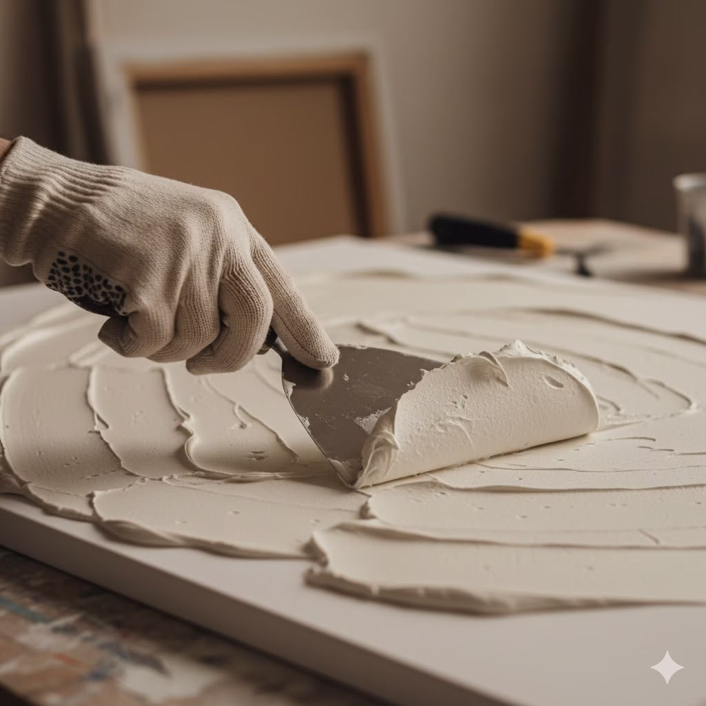 Yes, that is true. The sculptural canvas works because the texture is meant to be uneven and random. There is no correct or incorrect way to spread the joint compound. Your “mistakes” are what give the art its unique look and depth. This mimics the expressive style of professional abstract art. It is the perfect DIY Wall Art project for anyone starting out.