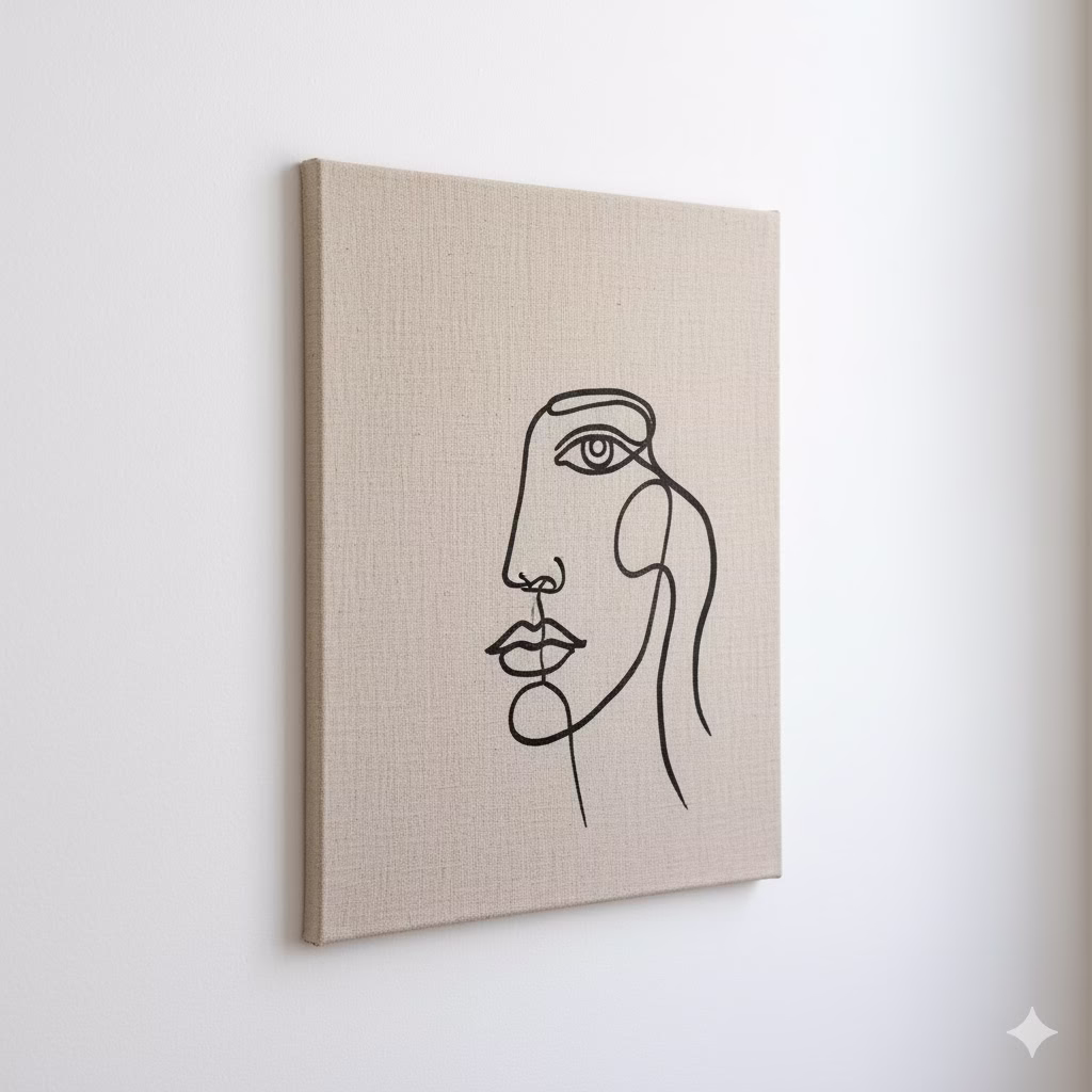 How To Do It: Buy a piece of raw, unbleached linen or drop cloth. Stretch it over a wood frame. Use a thick black paint pen or a permanent marker. Draw a single, continuous, slightly imperfect line. Draw a simple figure, face, or landscape. The natural feel of the linen combined with the single, bold line creates a very modern, gallery-worthy piece of Art at Home.