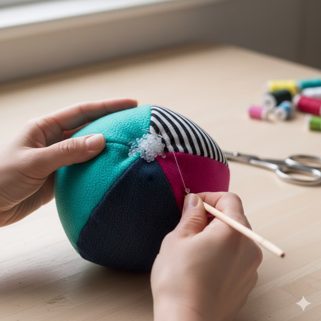 - The Smooth-and-Cool Ball: Use smooth materials like satin or silk for four panels. Then, add two panels of thin, tightly woven linen. You can also sew in a small, smooth, flat plastic disc (like a coaster, covered safely in soft padding). This gives the child a cool, hard spot to press, which appeals to the sense of temperature.