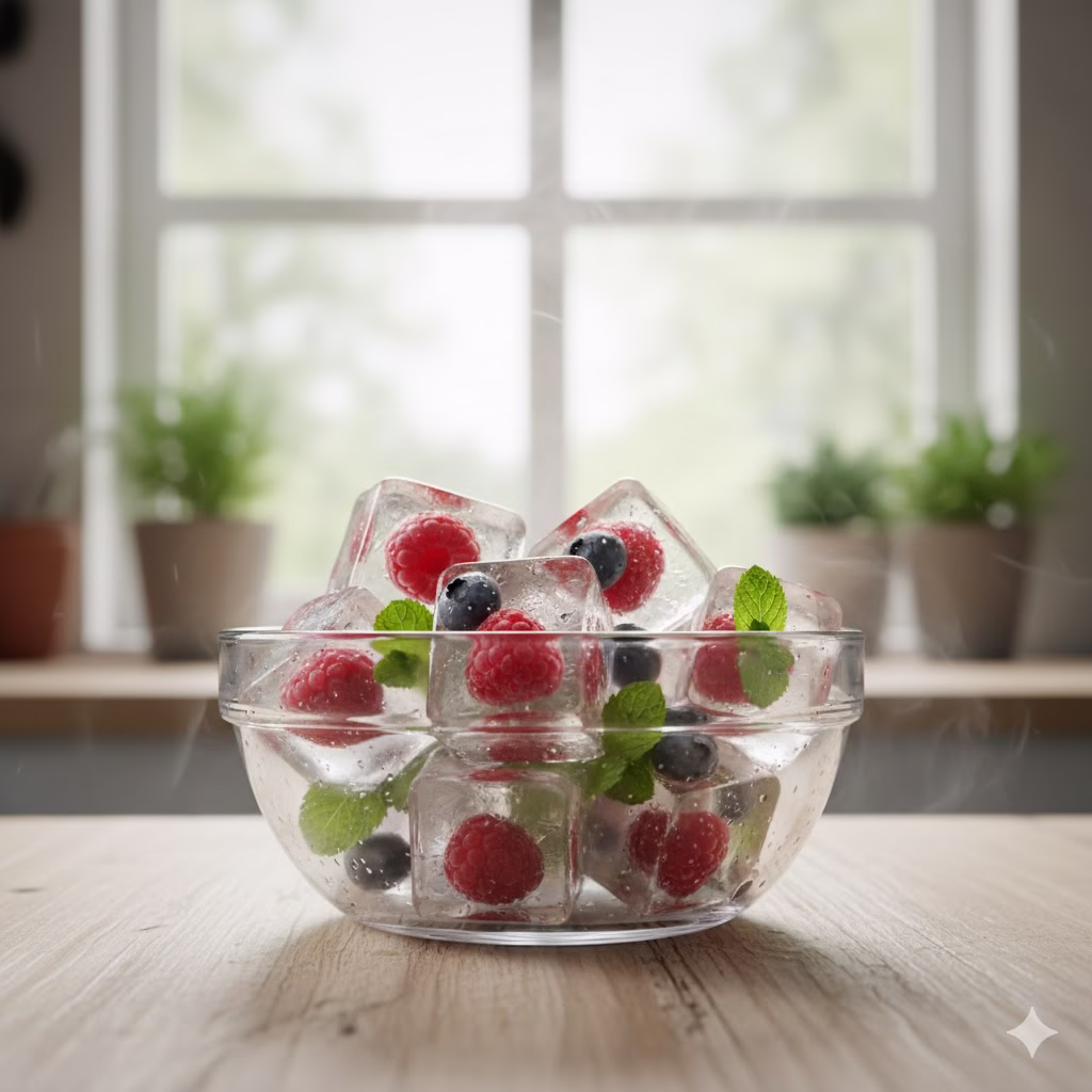 Fruit and Herb Ice Cubes: Freeze water with small bits of fruit (berries, citrus peel) or herb leaves (mint, basil). When they melt, they subtly flavor the drink instead of watering it down.