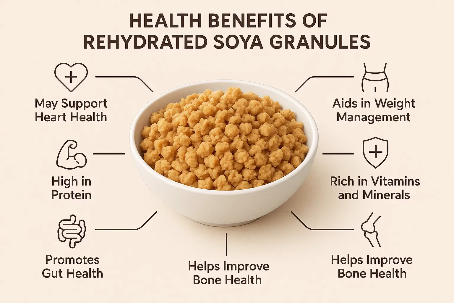 - 2 cups Low Sodium Vegetable Broth: To rehydrate the soya and add flavor.