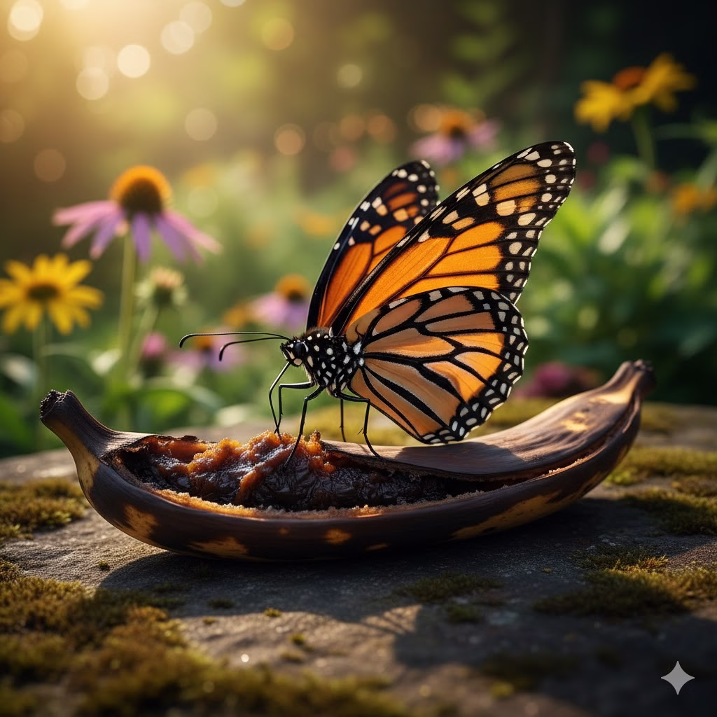 - Attract Butterflies: Place very ripe, mushy banana peels on a flat stone or tray away from direct sunlight. The sweetness draws in butterflies, bees, and other good pollinators.