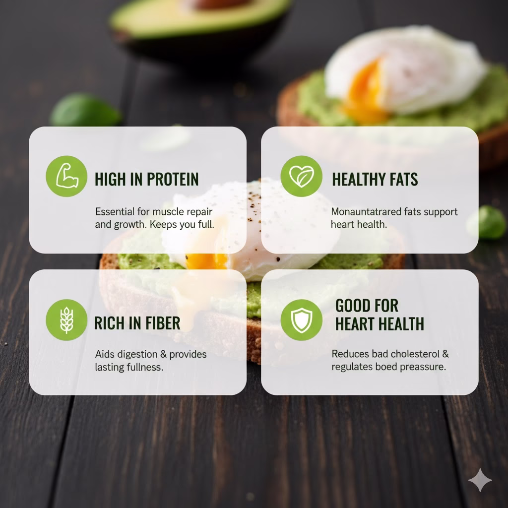 This breakfast is more than just tasty; it’s a bundle of nutrients that helps your health and fitness goals. The combination of Avocado with protein and fiber makes it a complete, nourishing meal.