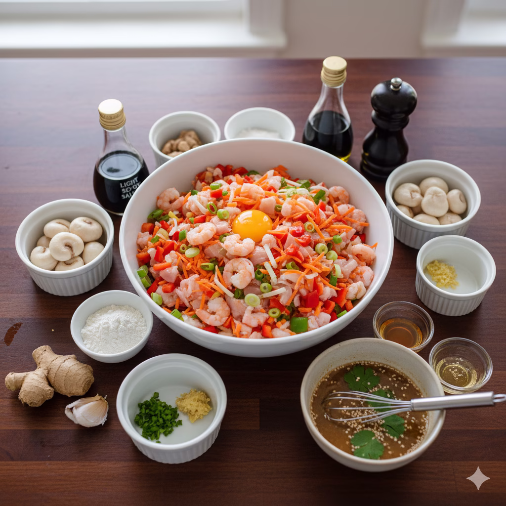 Vegan Option | For a plant-based version, replace the shrimp/chicken with finely crumbled firm tofu or mashed chickpeas. Use a flax egg (1 tbsp ground flaxseed + 3 tbsp water) instead of an egg white, and ensure your soy sauce is vegan. |