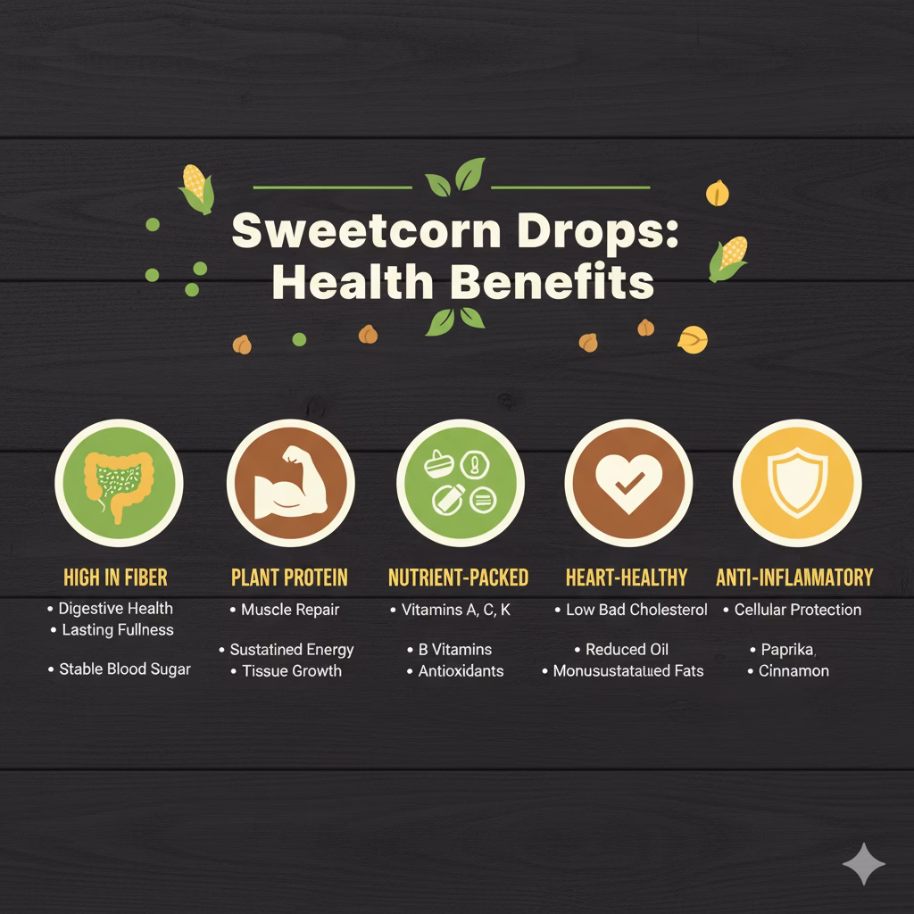 These sweetcorn drops are more than just a tasty snack; they offer several key health benefits that make them a smart choice for your diet, aligning perfectly with a wholesome lifestyle.