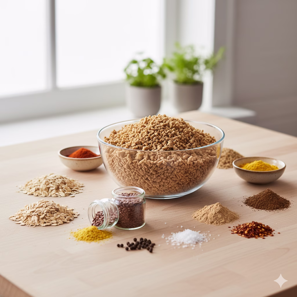 The base of this mix is often textured vegetable protein (TVP). Don’t let the name scare you! TVP is simply a dehydrated soy product that’s incredibly light and spongy. When you rehydrate it with hot water or broth, it plumps up and takes on the texture of ground meat, making it a perfect stand-in for burgers, meatloaf, and crumbles. We’ll also be adding other simple pantry staples like oats, nutritional yeast, and common spices to boost its flavor and texture.