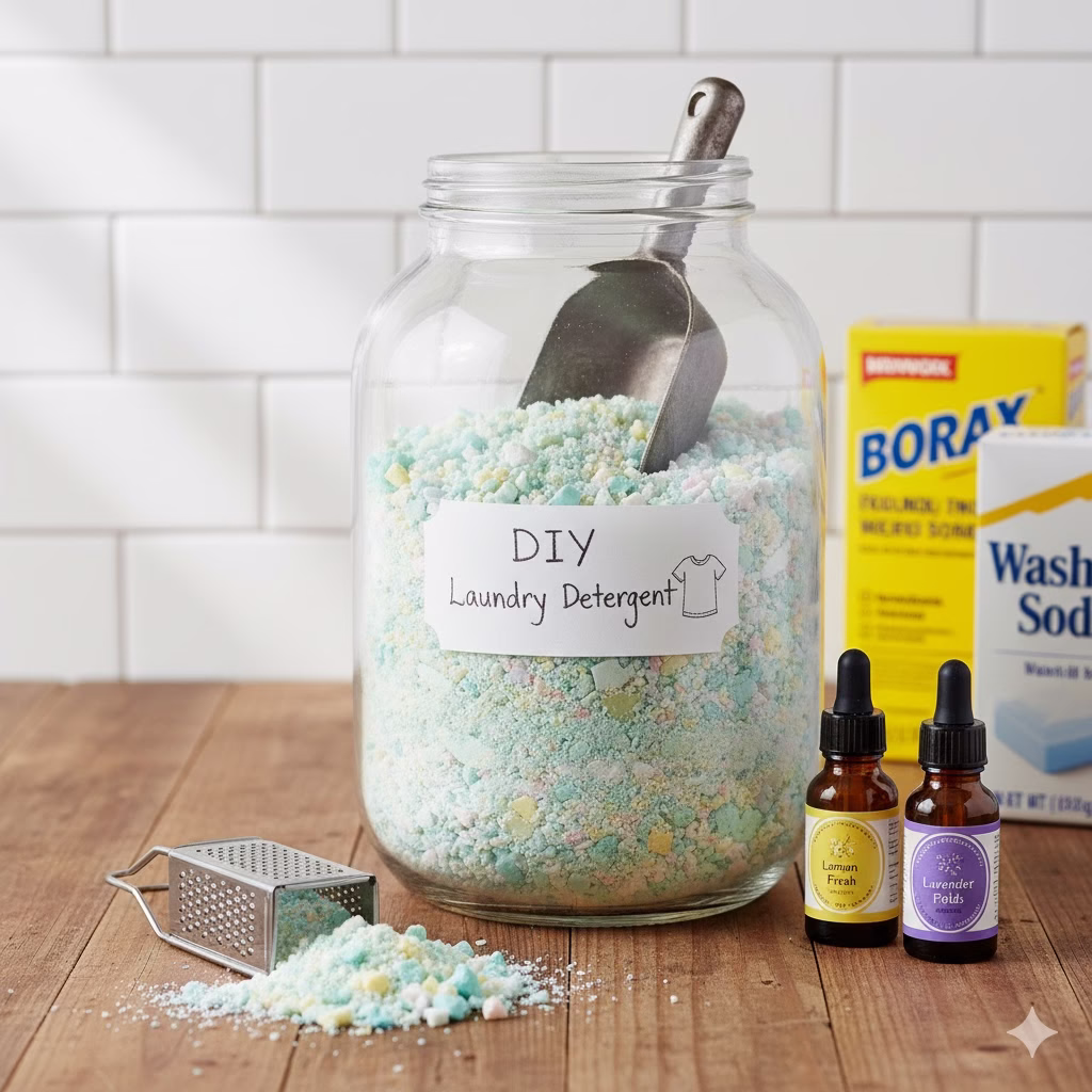 A: The products meant for the body (New Bar of Soap and Body Scrub) use gentle ingredients and are safe, provided you didn’t start with harsh chemical soaps. For the strong cleaning items (Laundry Detergent and All-Purpose Cleaner), always wear gloves if you have sensitive skin, just like you would with store-bought cleaners.