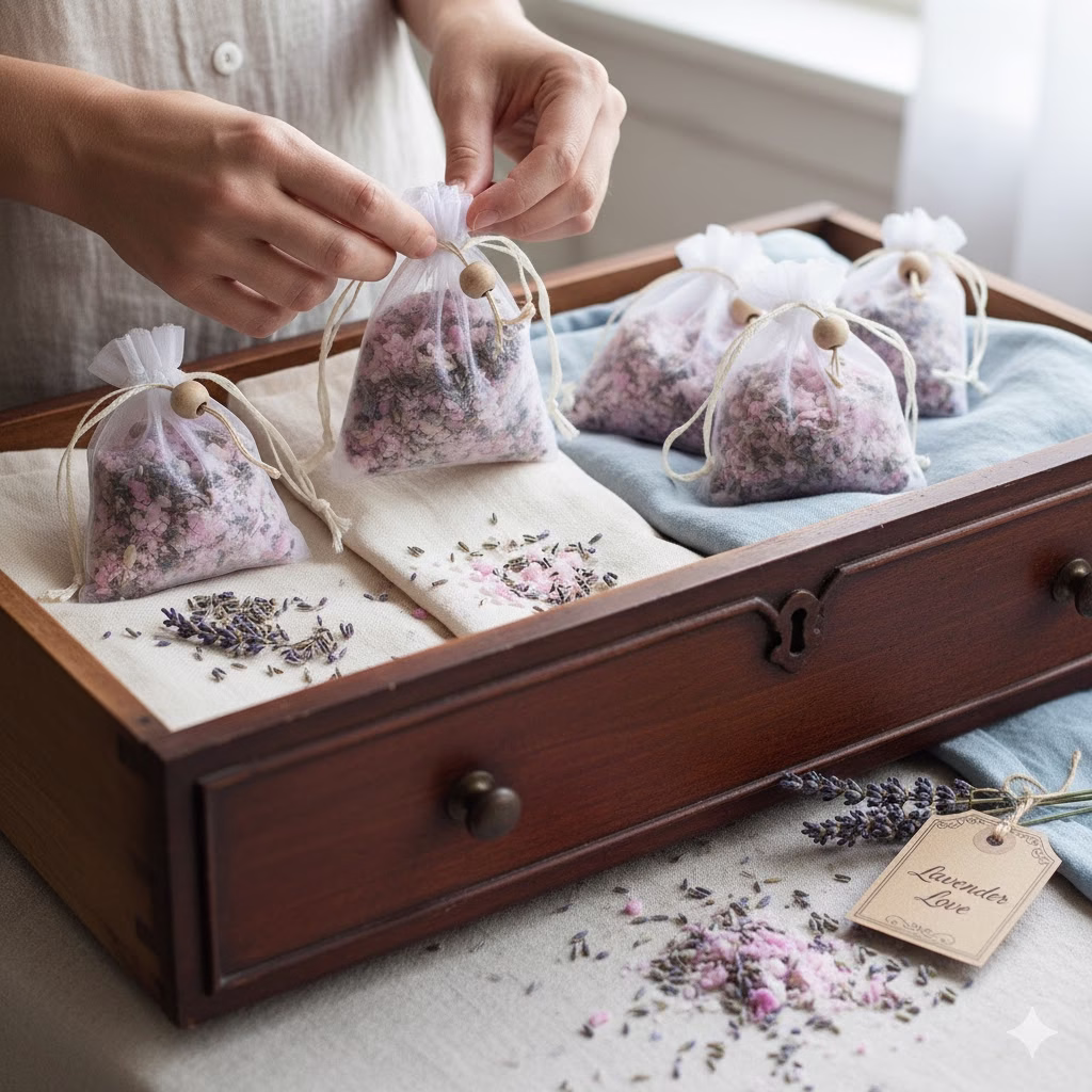 - Place: Tuck the finished sachets into clothes drawers, among towels, or hang them in the closet. The scent will gently perfume your fabrics.