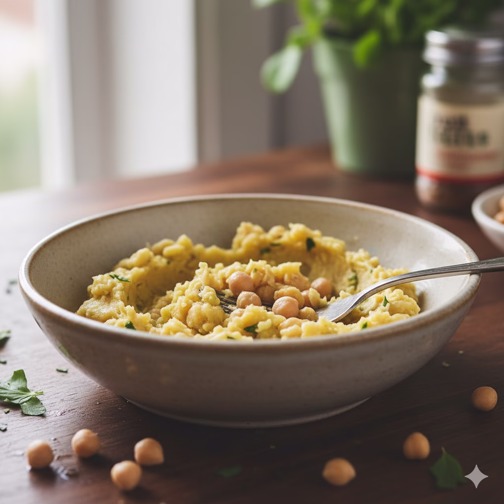 Prepare the Chickpea Mix: In a large mixing bowl, add the washed and drained chickpeas. Use a fork or a masher to mash the chickpeas. You want them to be mostly broken down but still have some lumps. You do not want a smooth paste. Some whole or half chickpeas are good for texture.