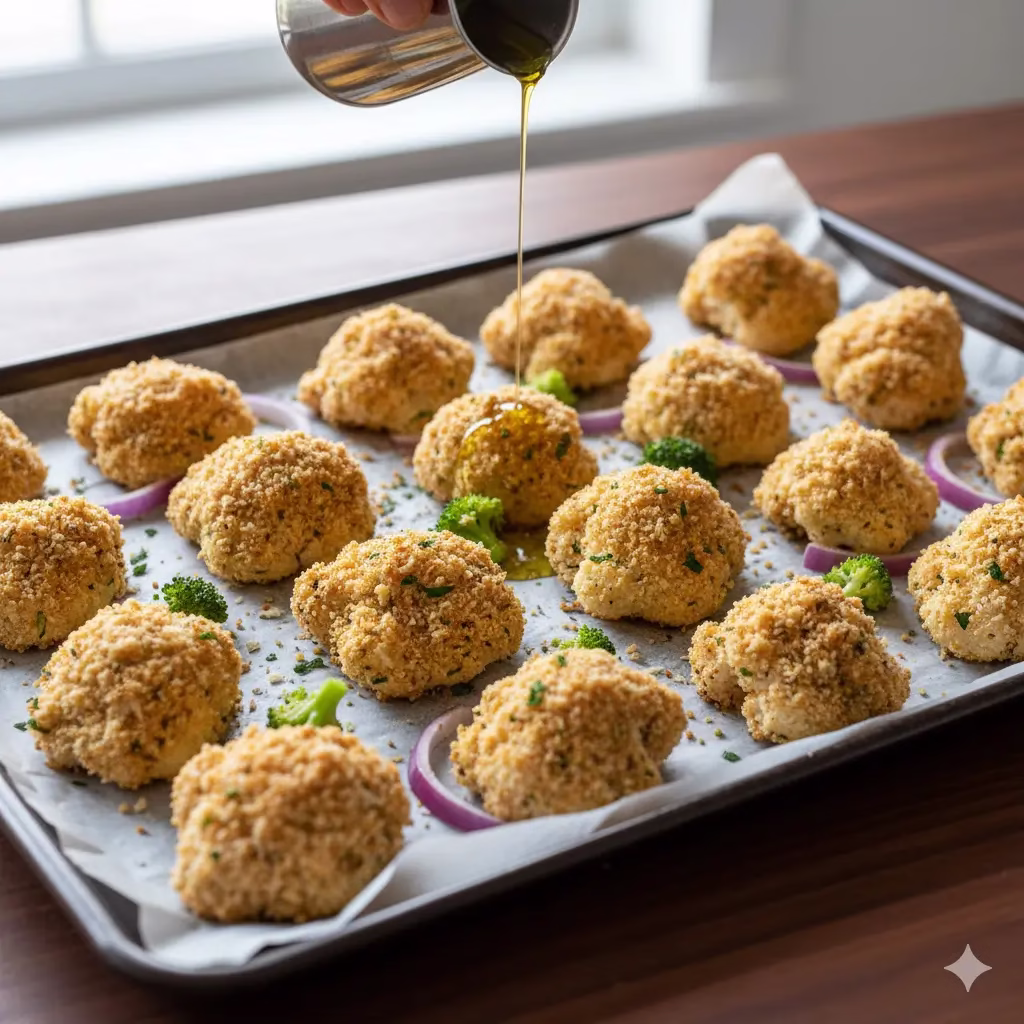 Oven Baking: Get a large baking sheet ready. You can lightly oil it or use parchment paper. Arrange the breaded vegetables in a single layer. Make sure they are not touching. Drizzle or spray about half of the olive oil over the vegetables. This helps them get golden and crispy.