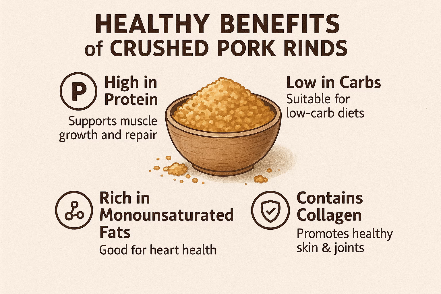 Crushed Pork Rinds | Low-carb, Keto, Gluten-free | Salty, savory, very crunchy | Getting a fried-like texture, like on fried chicken. |