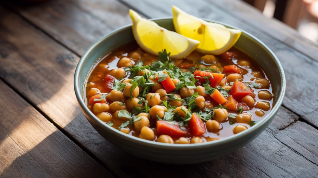 The vibrant Moroccan chickpea soup is a delightful representation of the country’s rich culinary heritage. This dish combines the earthiness of chickpeas with the freshness of vegetables, creating a comforting meal that warms the soul.