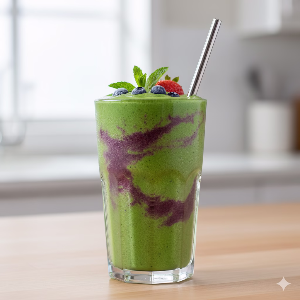 Blend Until Smooth: Close the lid tightly on your blender. Start blending slowly at first to break up the frozen chunks. Then, speed it up to high. Blend until the smoothie is totally smooth and thick, with no little pieces of leaf or fruit left. This usually takes one to two minutes. If the smoothie is too thick and the blender is struggling, add just a tiny bit more liquid (a tablespoon at a time) until it moves easily.