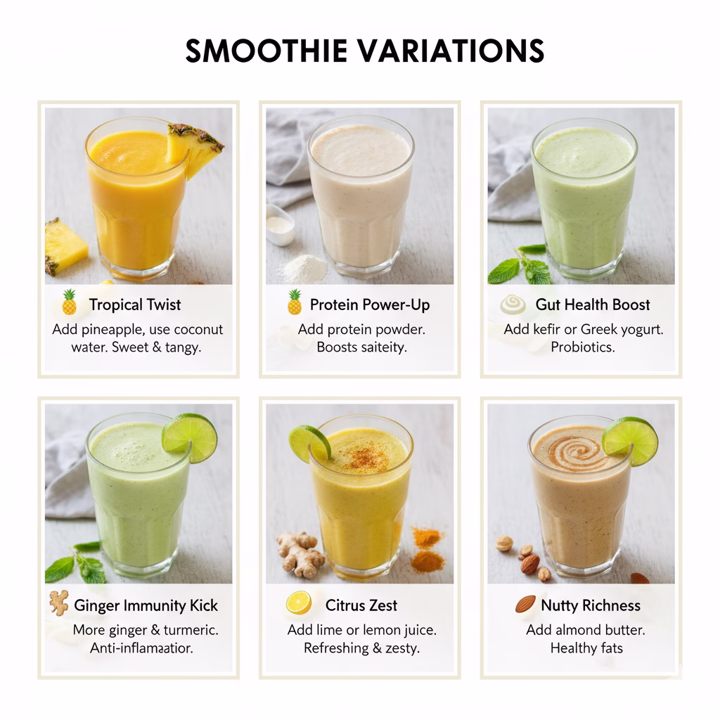 Tummy Tamer | Add ¼ cup of kefir or plain Greek yogurt. | Adds probiotics for a healthy stomach and makes the texture thicker. |