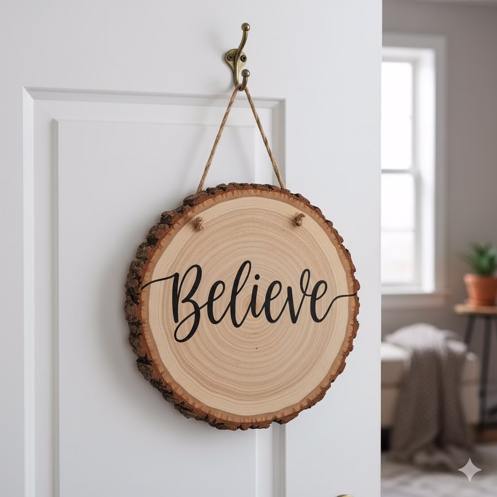 Perfect for a bedroom, office, or front door, the natural edge of a wood slice brings a true outdoor element inside.