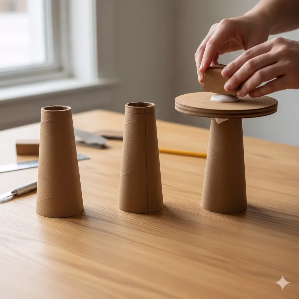 • The Base Structure: You need a sturdy inverted cone shape. The easiest option is a heavy-duty cardboard yarn cone (the kind industrial thread is wrapped around). If you cannot find one, a pre-cut foam or wood cone base, adjusted to the right height and angle, will also work well. If you use cardboard, check that it is clean, dry, and strong.