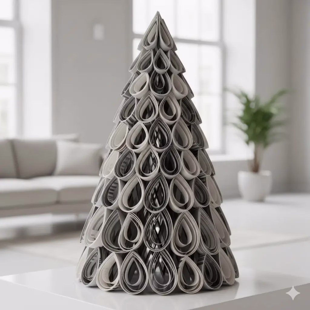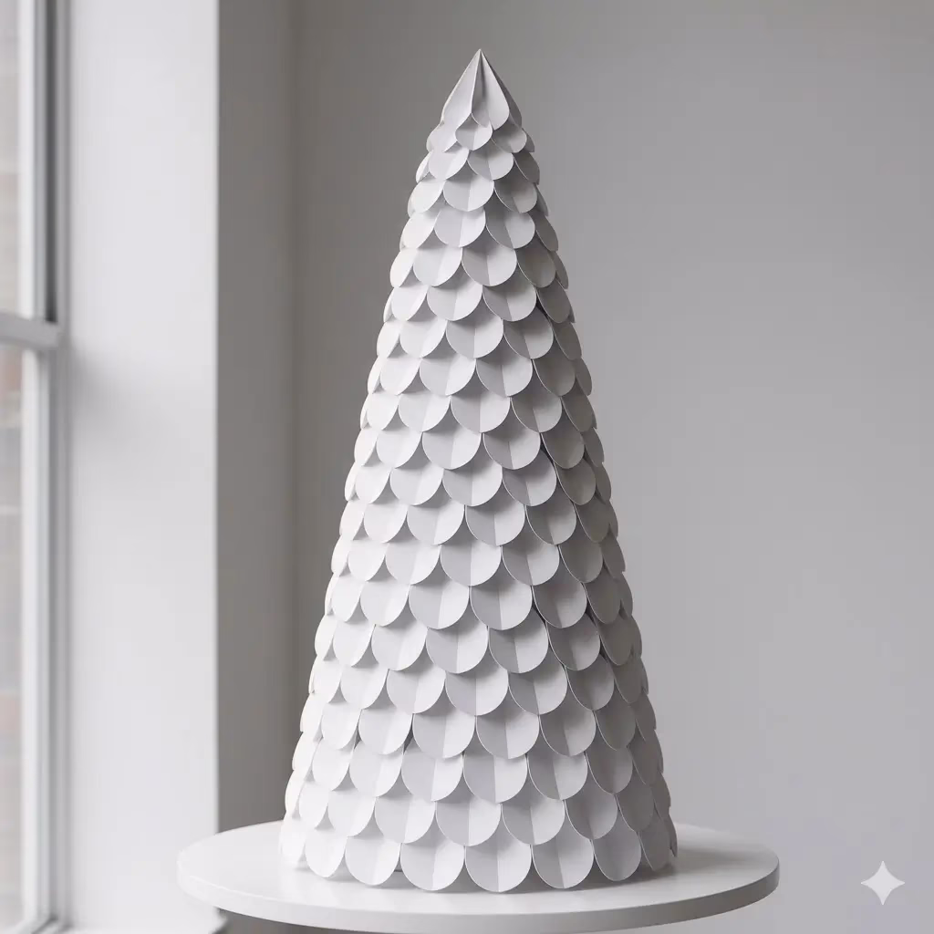 - The Reveal: When finished, the tree should look like it’s made of layered scales or petals. Use matte white paper for a snow-drift look or metallic silver for high glamour.