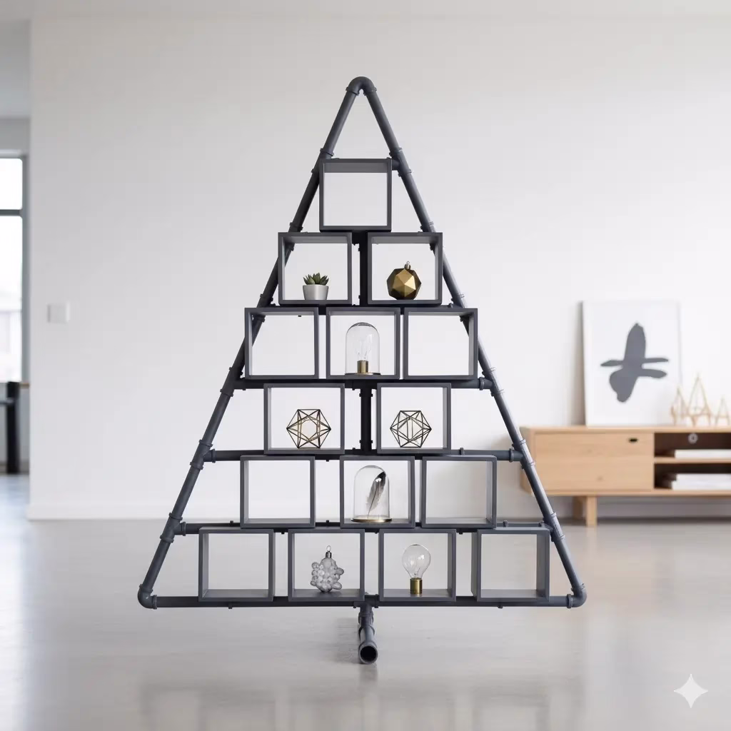 | The Minimalist PVC Pipe Grid Tree | Use wider diameter PVC pipe (2–3 inches) and buy pipes in 10-foot lengths to build a full, tall pyramid structure. |