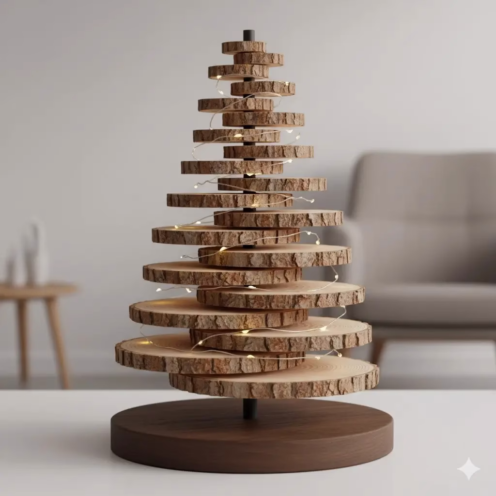 | The Stacked Log Base Tree | Purchase a central threaded metal rod (not just a dowel) 6 feet long and use large, heavy wood slices for the base to ensure stability. |