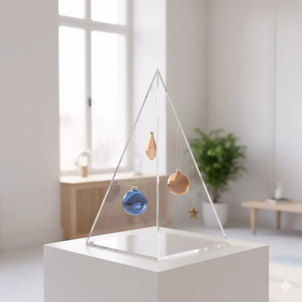 Concept: A highly sleek, almost invisible tree that focuses entirely on the ornaments. This is ideal for showcasing a curated collection of beautiful ornaments.