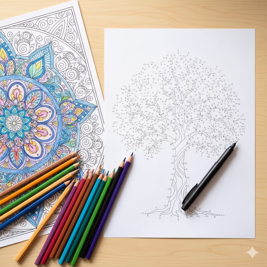 A: It truly helps. The activity uses the front part of your brain that controls tasks like planning and focus. It can also cause a Flow state, which is a deep, mentally restful state. The slow, step-by-step nature of connecting dots is a known method for reducing stress and worry by keeping your mind on the present moment, much like mindful meditation.