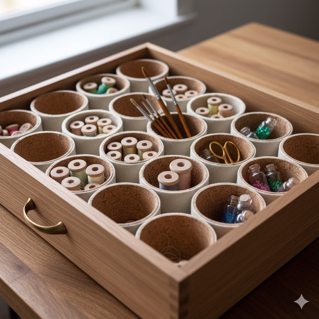 Organization is key to a calm craft space, and yarn cones are perfectly shaped to help segment those unruly drawers.