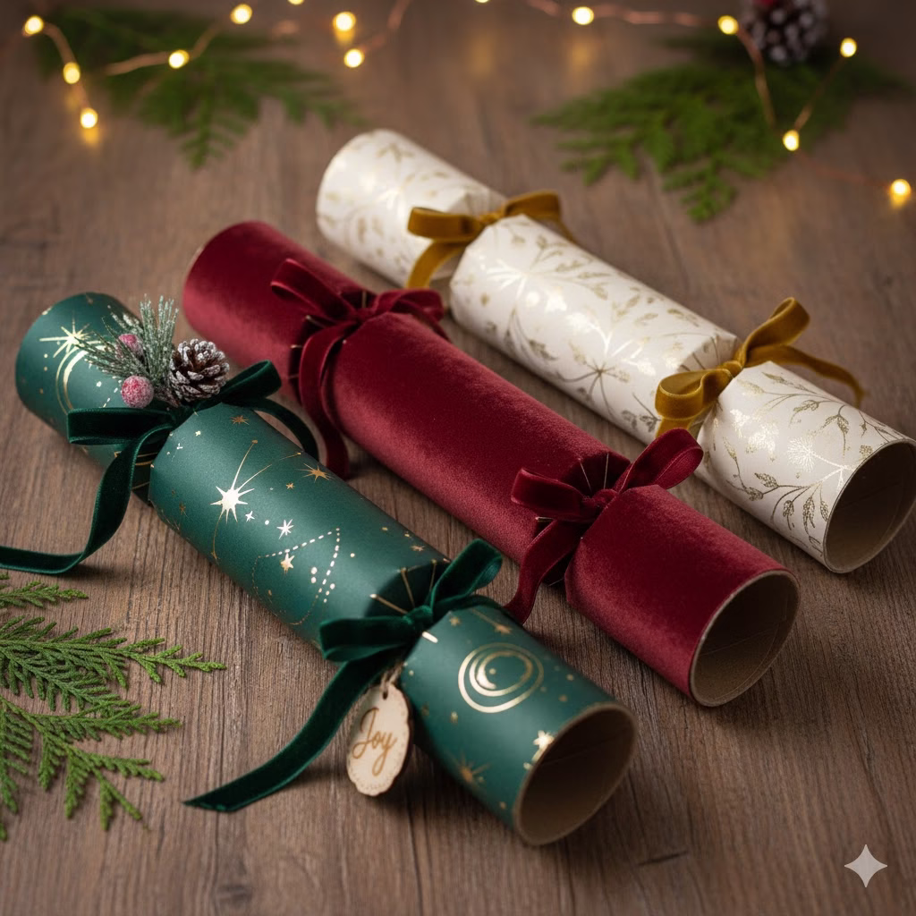 Elevate your party favours or holiday tablescape with beautiful, oversized cone-based crackers.