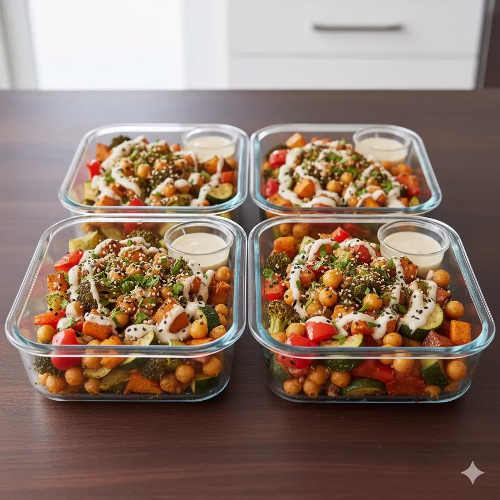 A: Planning and meal prepping are your best friends! Dedicate a few hours one day a week (e.g., Sunday) to chop vegetables, cook grains, and prepare components like the roasted chickpeas and veggies from our recipe. Store them in airtight containers. This way, you can quickly assemble healthy meals during the week. Batch cooking larger quantities of healthy dishes that can be portioned out for several days is also highly effective. Keeping healthy snacks like fruits, nuts, and yogurt on hand can prevent reaching for less healthy options when hunger strikes.